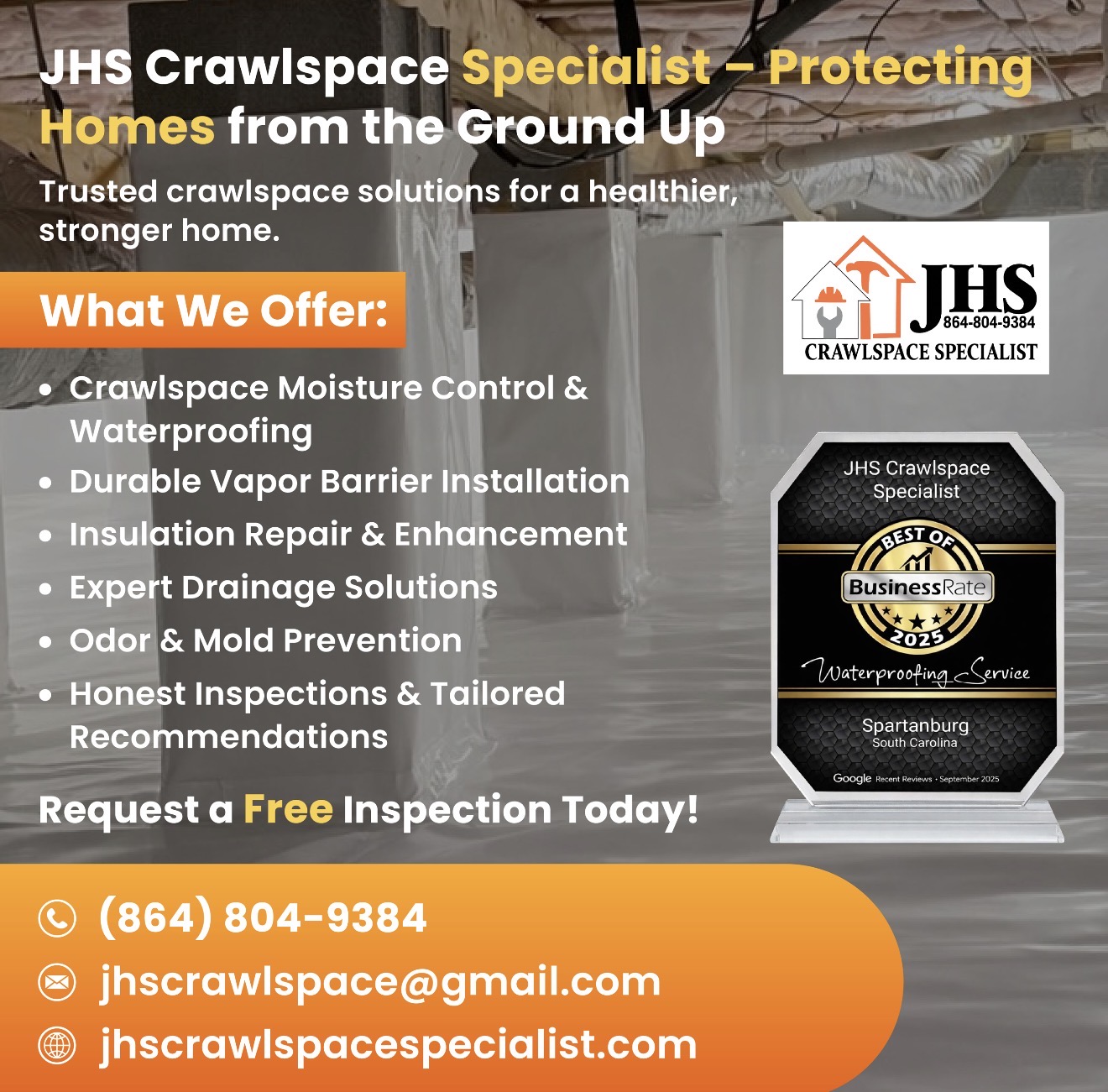 Book your free crawlspace inspection today — no pressure, no scare tactics.